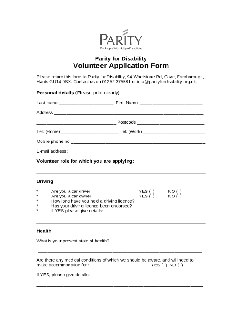 Frequently asked questions about the form Volunteer Application - parityfordisability org