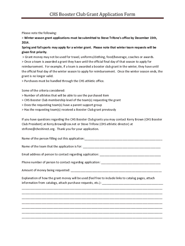 Visit the official website of the CHS Booster Club to find the grant application form.