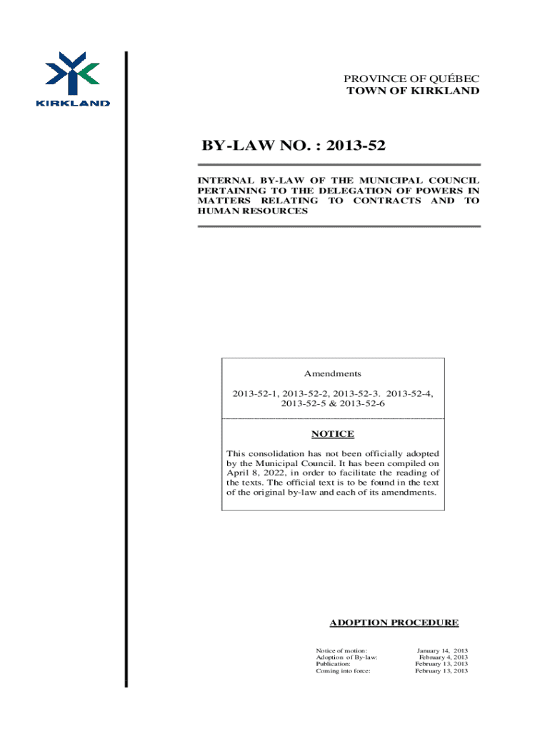 Fill out your by-law no 2013-52 online with pdfFiller!