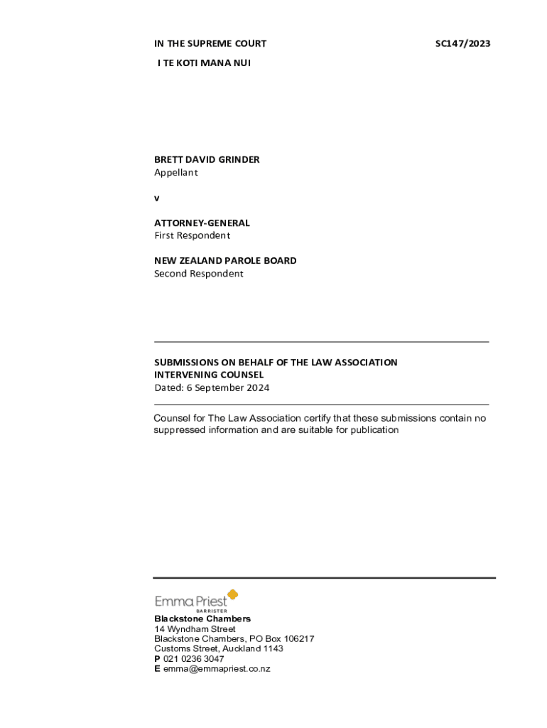 IN THE SUPREME COURTSC147/2023I TE KOTI MANA NUIBRETT DAVID GRINDER Appellant v ATTORNEYGENERAL First Respondent NEW ZEALAND PAROLE BOARD Second Respondent___ SUBMISSIONS ON BEHALF OF THE LAW ASSOCIATION
