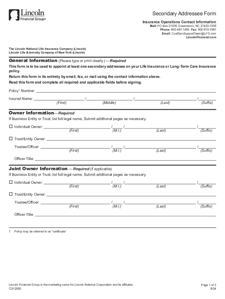 Fill out your secondary addressee form online with pdfFiller!