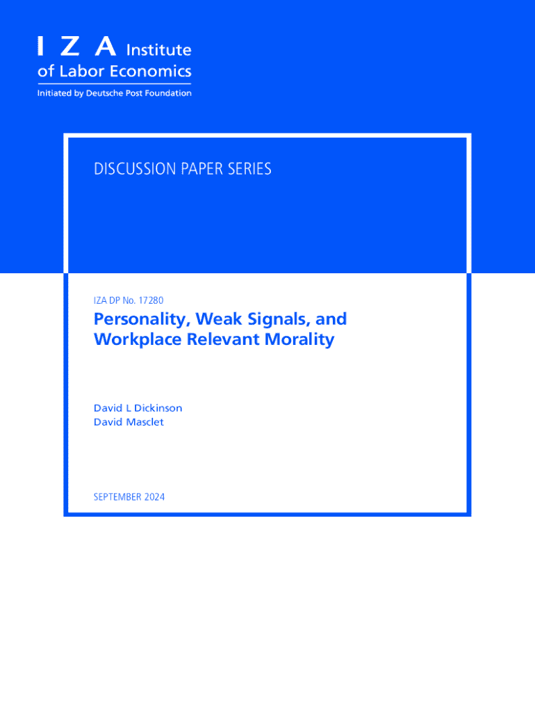 This discussion paper examines the effects of dark and light personality traits on workplace behaviors such as task effort, honesty, and reciprocity. It explores how these traits relate to moral disengagement and the impact of weak signals such as religious participation and criminal history. The study utilizes experimental data to analyze the behaviors of individuals with different personality types and their implications in recruitment and workplace productivity.