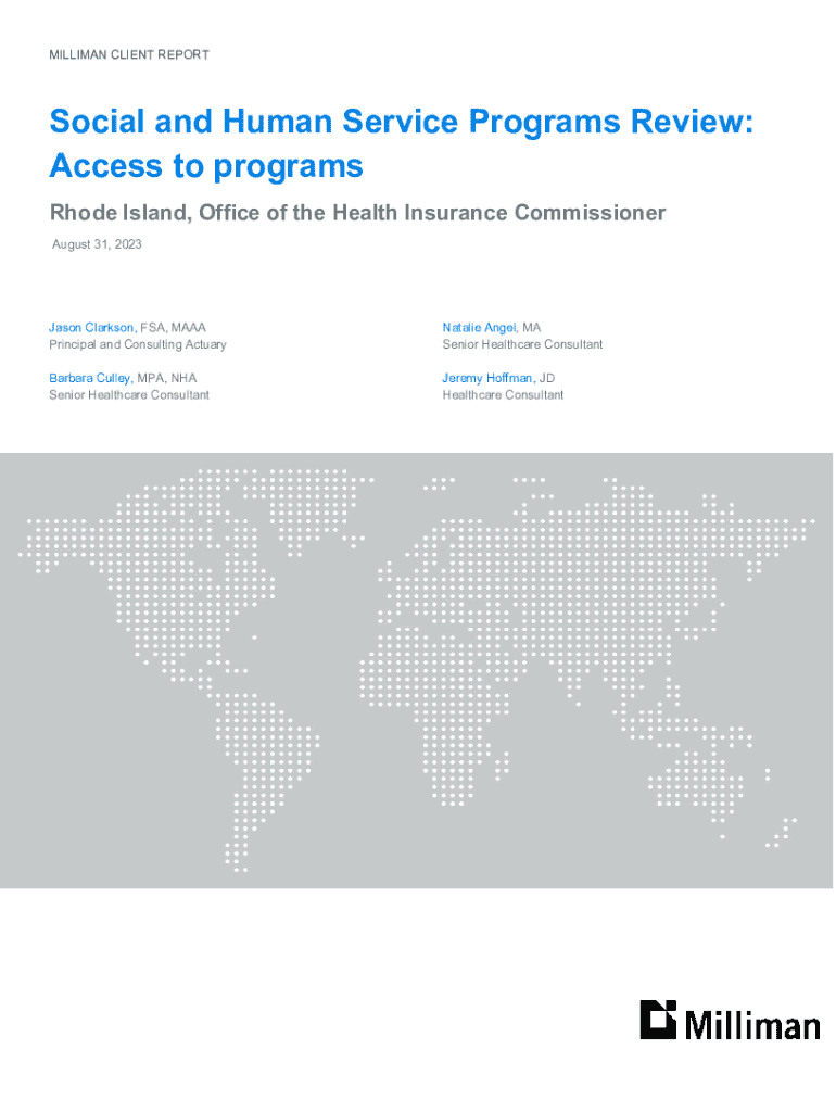 MILLIMAN CLIENT REPORTSocial and Human Service Programs Review: Access to programs Rhode Island, Office of the Health Insurance Commissioner August 31, 2023Jason Clarkson, FSA, MAAA Principal and