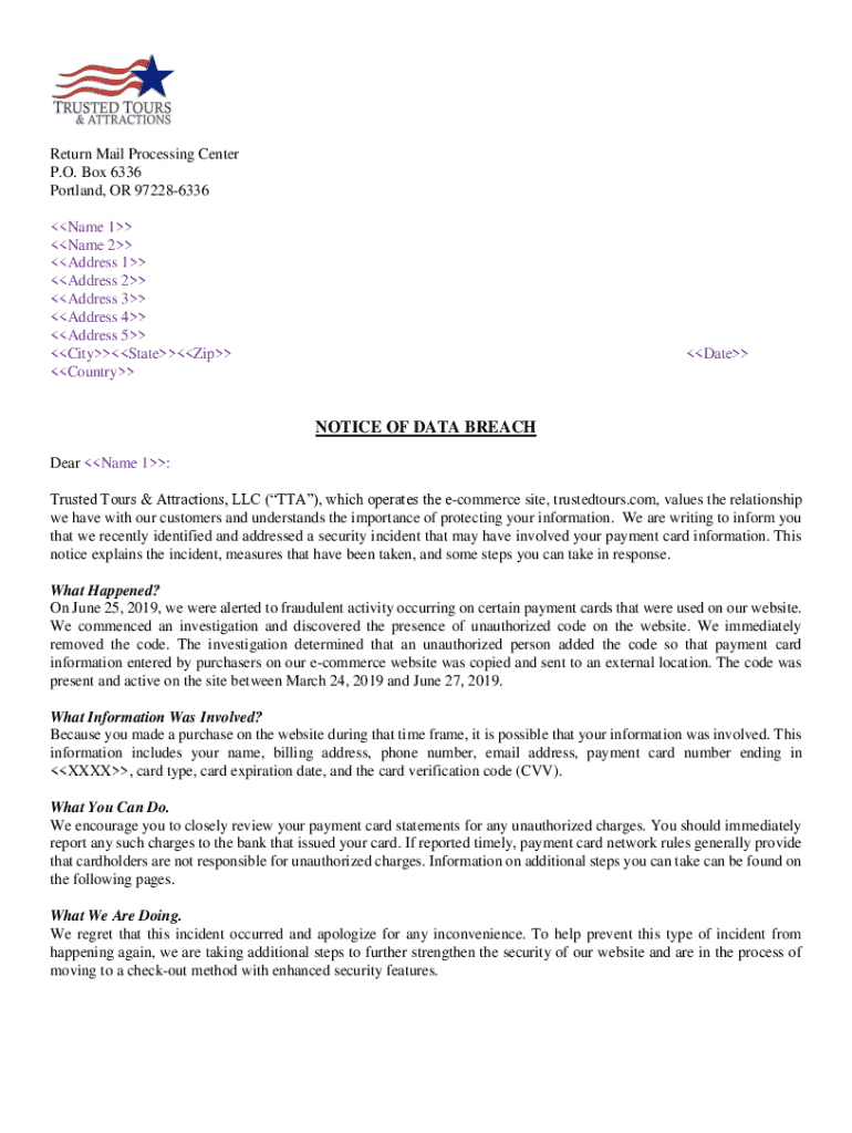 Return Mail Processing Center P.O. Box 6336 Portland, OR 972286336 Name 1 Name 2 Address 1 Address 2 Address 3 Address 4 Address 5 CityStateZip CountryDateNOTICE OF DATA BREACH Dear Name 1: Trusted