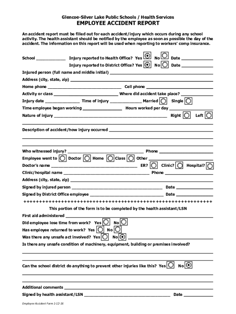 Typically, the employer or a designated representative is required to file the employee accident report, especially if the accident results in injury, property damage, or requires medical treatment.