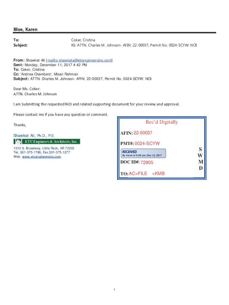 Get the free Notice of Intent for Coverage Under General Permit