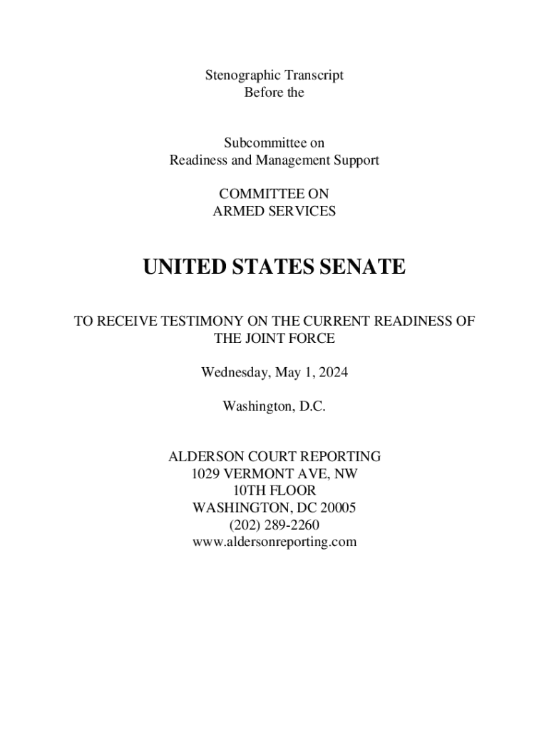 Stenographic Transcript Before theSubcommittee on Readiness and Management Support COMMITTEE ON ARMED SERVICESUNITED STATES SENATE TO RECEIVE TESTIMONY ON THE CURRENT READINESS OF THE JOINT FORCE