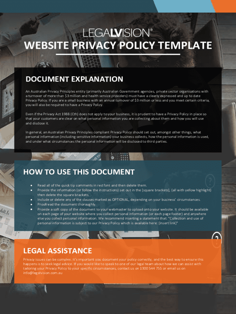 WEBSITE PRIVACY POLICY TEMPLATE DOCUMENT EXPLANATION An Australian Privacy Principles entity (primarily Australian Government agencies, private sector organisations with a turnover of more than $3