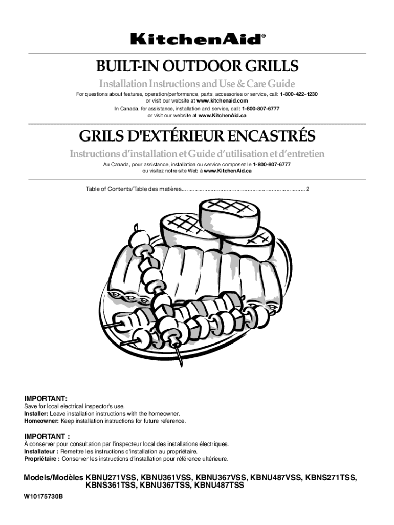 BUILTIN OUTDOOR GRILLS Installation Instructions and Use & Care Guide For questions about features, operation/performance, parts, accessories or service, call: 18004221230 or visit our website at