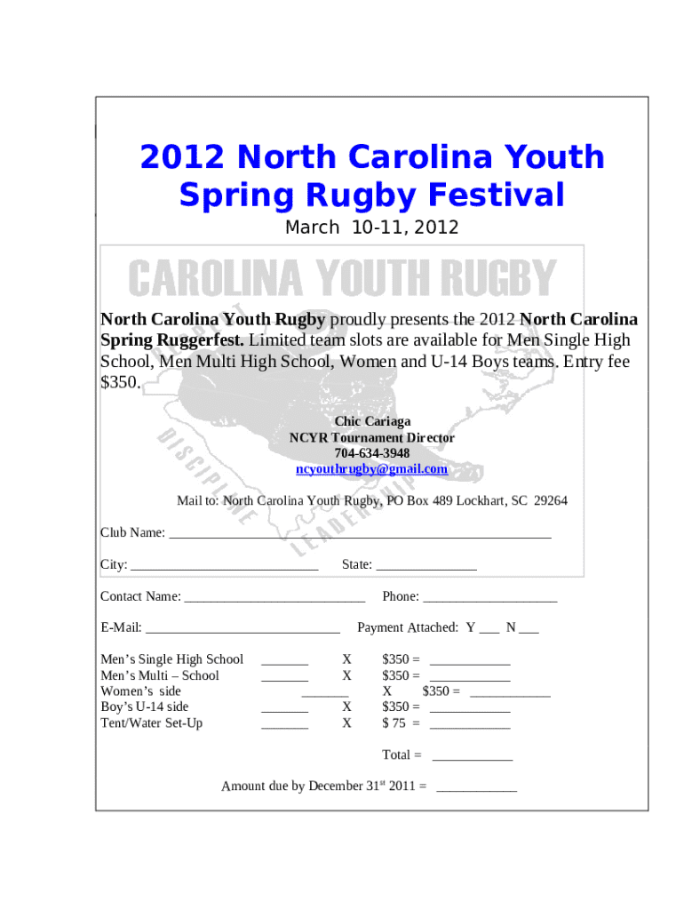 Instructions for the Unionville rugby team heading to North Carolina Tournament form