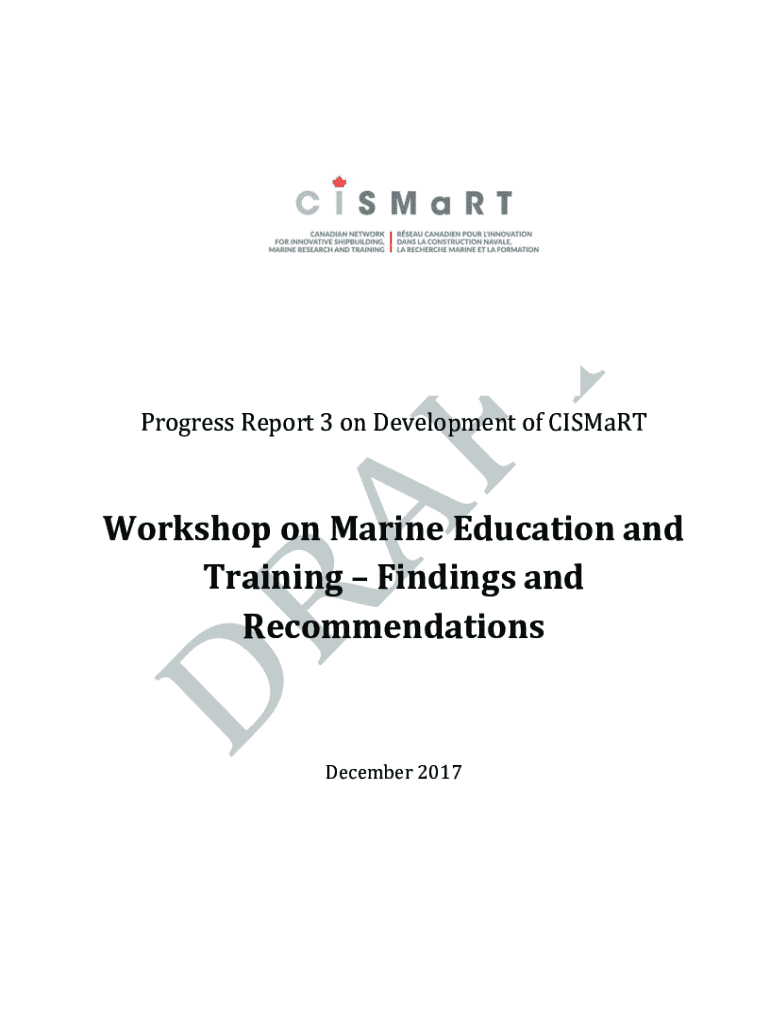 This document presents findings and recommendations from the third workshop on marine education and training, part of the CISMaRT initiative. It discusses key challenges and needs for education and training of professionals in Canada’s marine sector, highlights stakeholder insights, and suggests strategies for improvement based on workshop discussions.