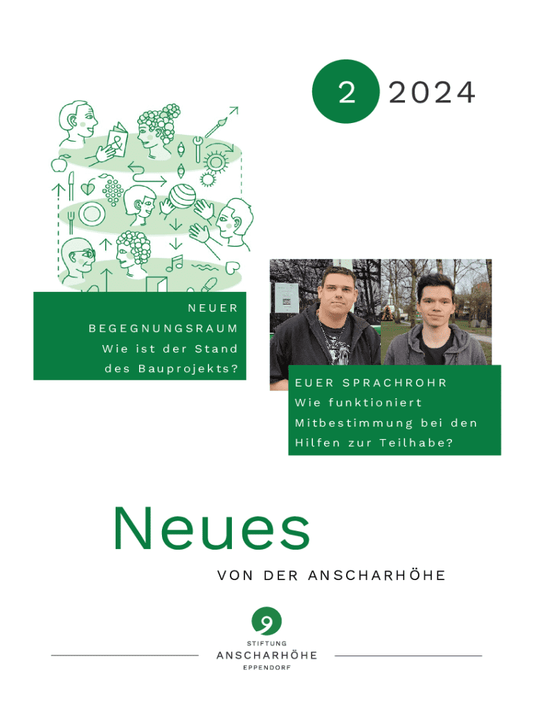 2 2024NEUER BEGEGNUNGSRAUM Wie ist der Stand des Bauprojekts? EUER SPRACHROHR Wie funktioniert Mitbestimmung bei den Hilfen zur Teilhabe?Neues VON DER ANSCHARHHE5 FR A GENA N5 Fragen an SVENJA KLOSMATTHIES