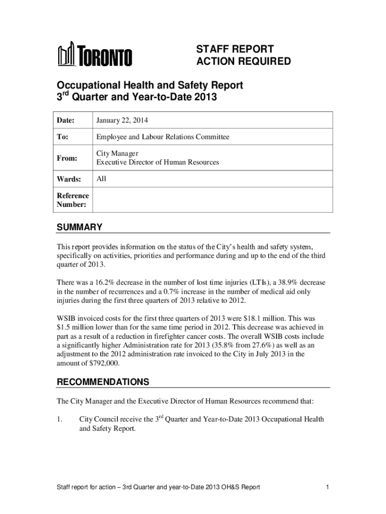 Get the free Occupational Health and Safety Report