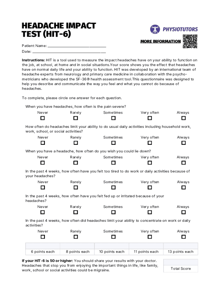 Get the free Headache Impact Test