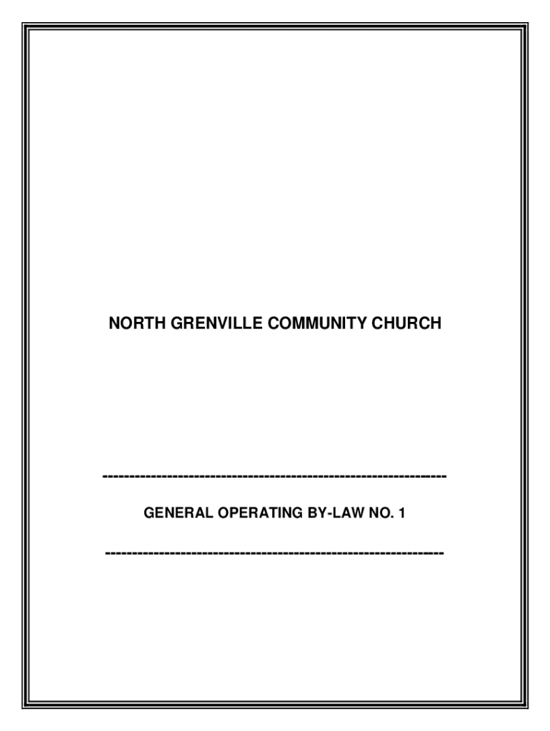 This document serves as the General Operating By-law for the North Grenville Community Church, outlining the structure, governance, functions, and responsibilities of its members, official board, and staff. It includes provisions related to membership, meetings, officers, financial matters, and amendments, ensuring adherence to the governance framework established by The Free Methodist Church in Canada.