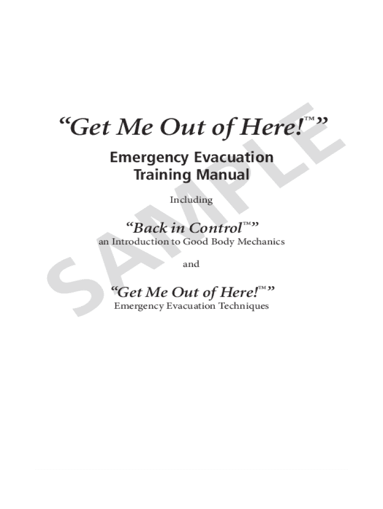 E LGet Me Out of Here!PEmergency Evacuation Training ManualM A IncludingBack in Controlan Introduction to Good Body MechanicsSandGet Me Out of Here! Emergency Evacuation TechniquesGet Me Out of Here!1Get