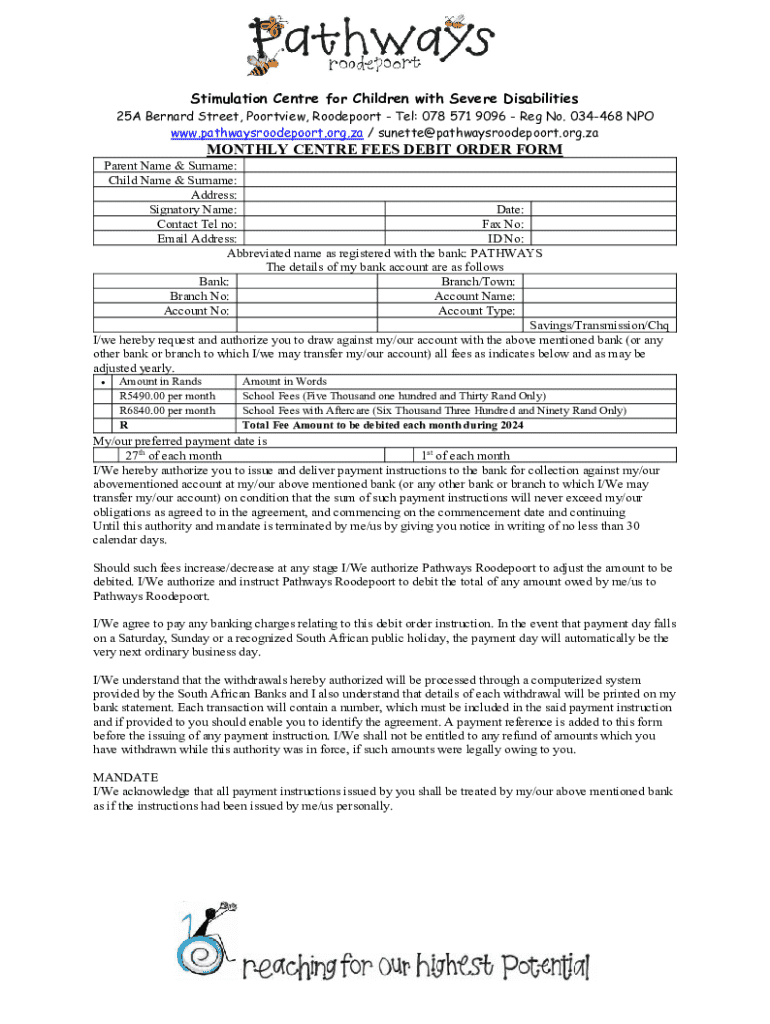 Get the free Monthly Centre Fees Debit Order Form