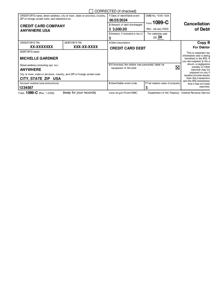 This form is used to report the cancellation of debt to the IRS. It provides important tax information regarding debt that has been discharged, including details of the creditor, debtor, and the amount of debt canceled. Taxpayers use this form to report taxable income resulting from canceled debts.