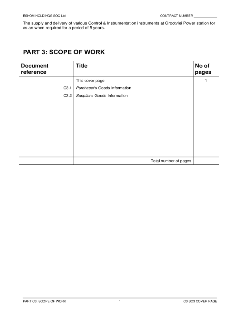 ESKOM HOLDINGS SOC LtdCONTRACT NUMBER ___The supply and delivery of various Control & Instrumentation instruments at Grootvlei Power station for as an when required for a period of 5 years.PART 3: