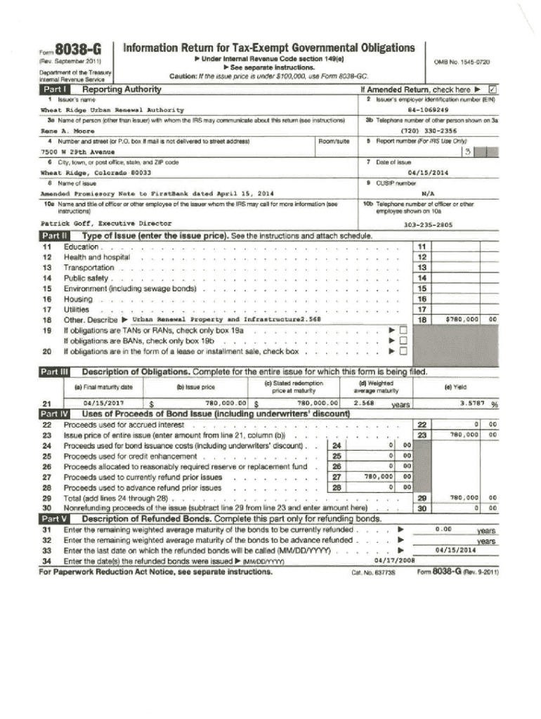 Get the free Form 8038-g - weblink ci wheatridge co