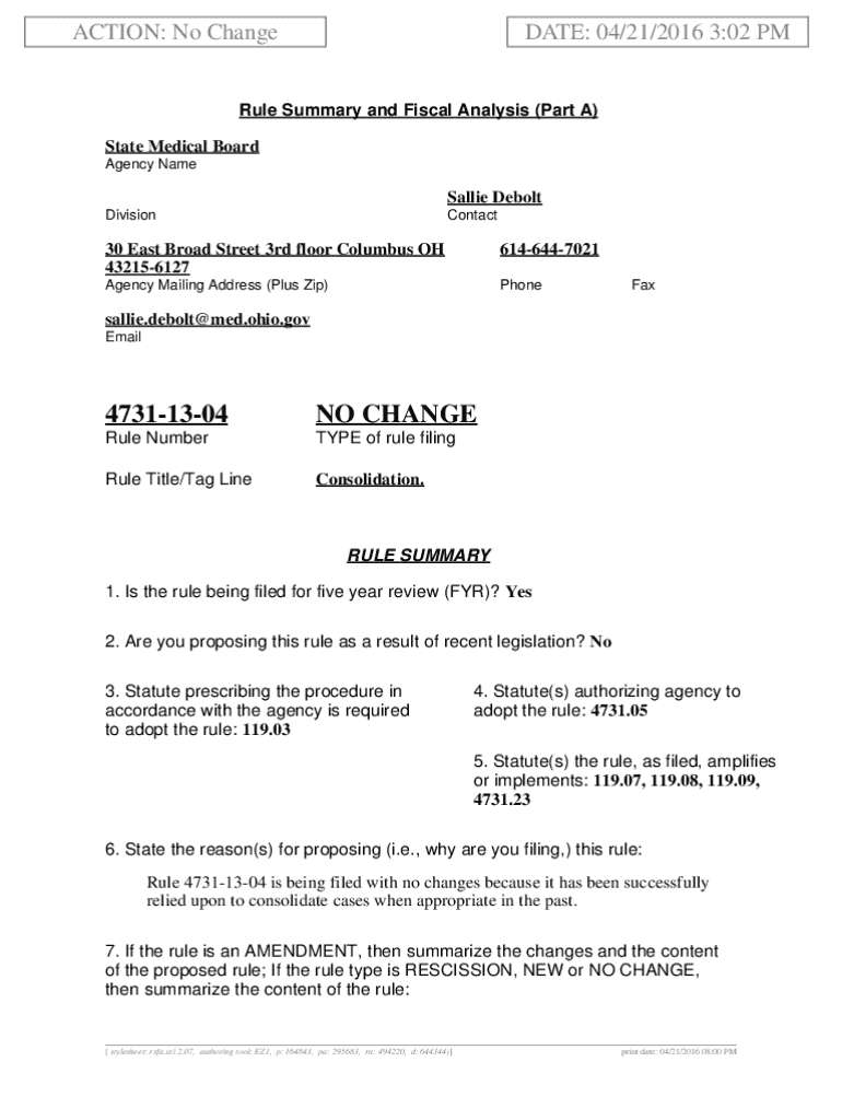 Get the free Rule Filing 4731-13-04