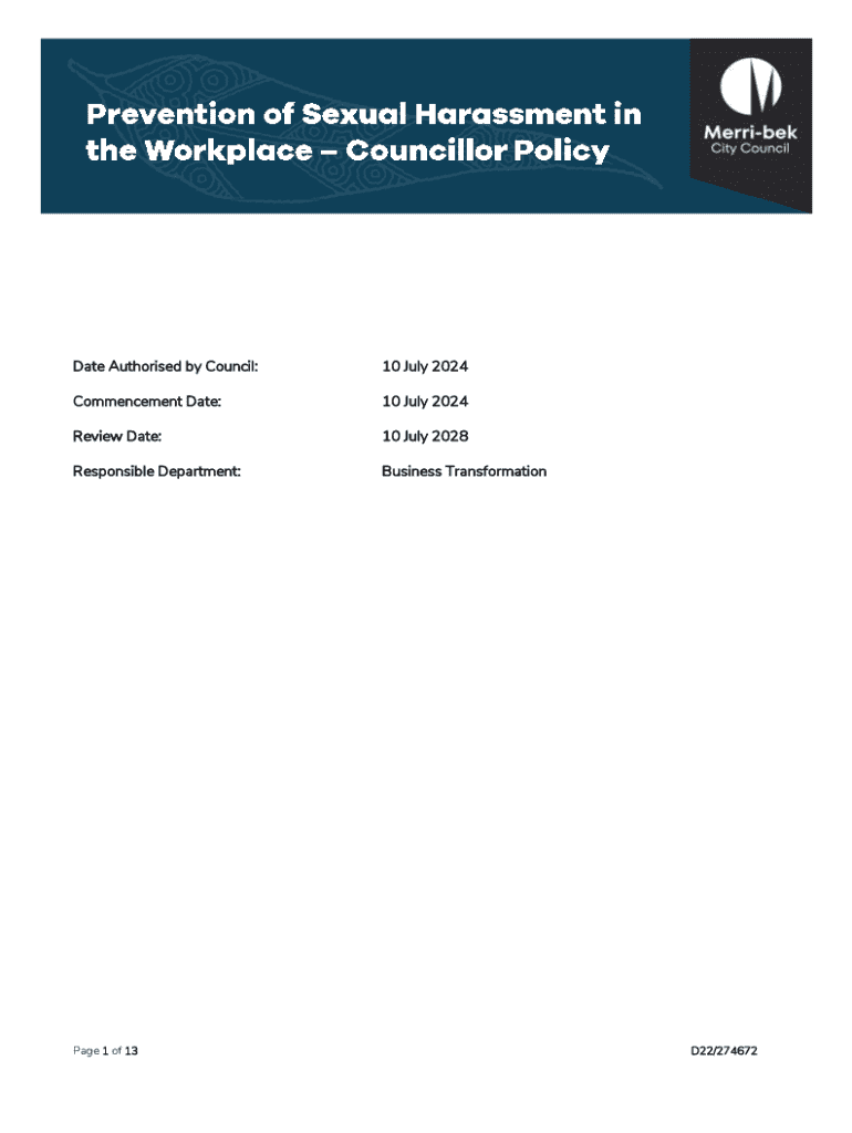 Date Authorised by Council:10 July 2024Commencement Date:10 July 2024Review Date:10 July 2028Responsible Department:Business TransformationPage 1 of 13D22/274672Contents 1INTRODUCTION___ 32SCOPE___