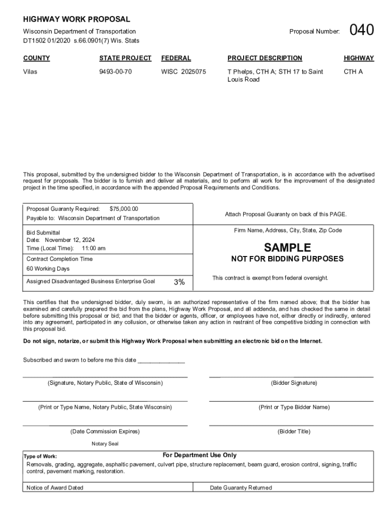 Get the free Highway Work Proposal - dot wi