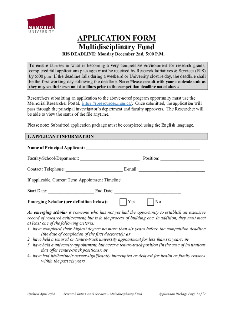 Get the free Application Package - Multidisciplinary Fund