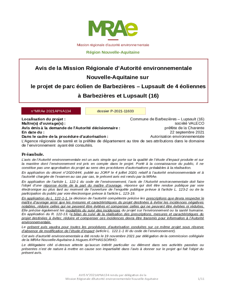 Rgion NouvelleAquitaineAvis de la Mission Rgionale dAutorit environnementale NouvelleAquitaine sur le projet de parc olien de Barbezires Lupsault de 4 oliennes Barbezires et Lupsault (16) nMRAe 2021APNA134dossier