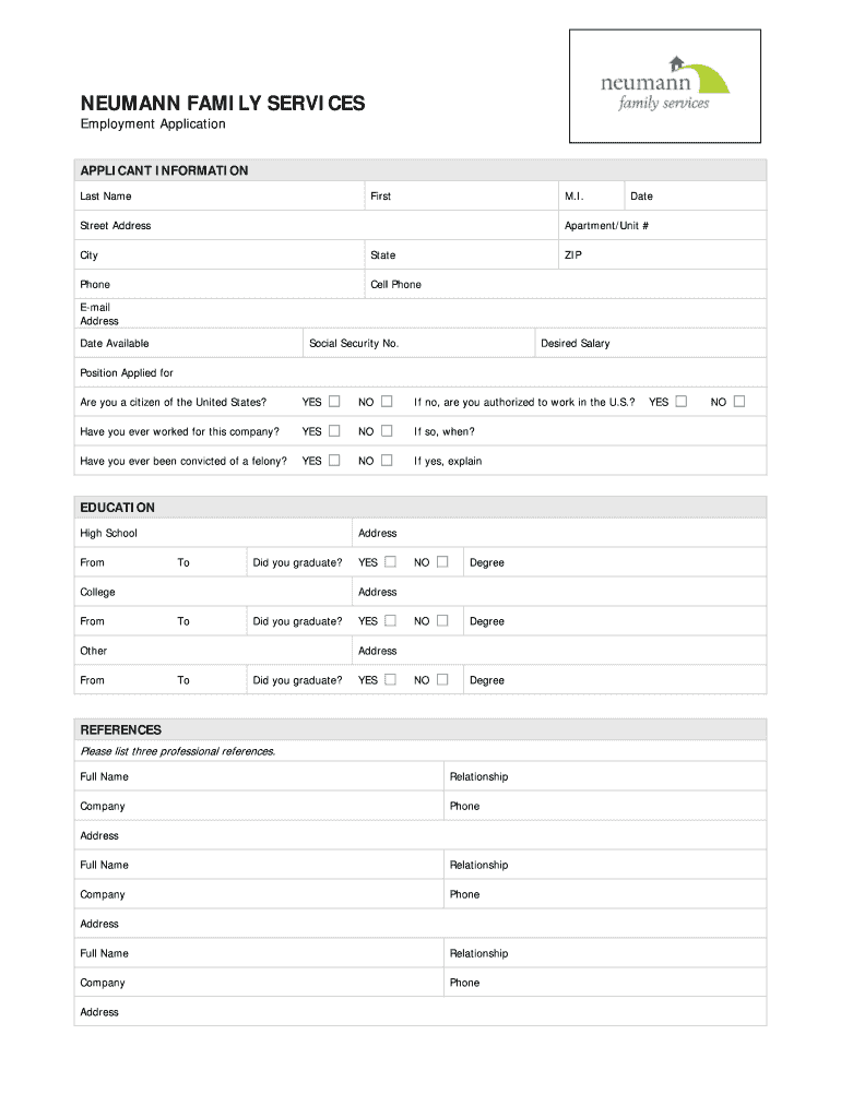 NEUMANN FAMILY SERVICES Employment Application APPLICANT INFORMATION Last Name First M.I. Street Address Date Apartment/Unit # City State ZIP Phone Cell Phone E-mail Address Date Available Social
