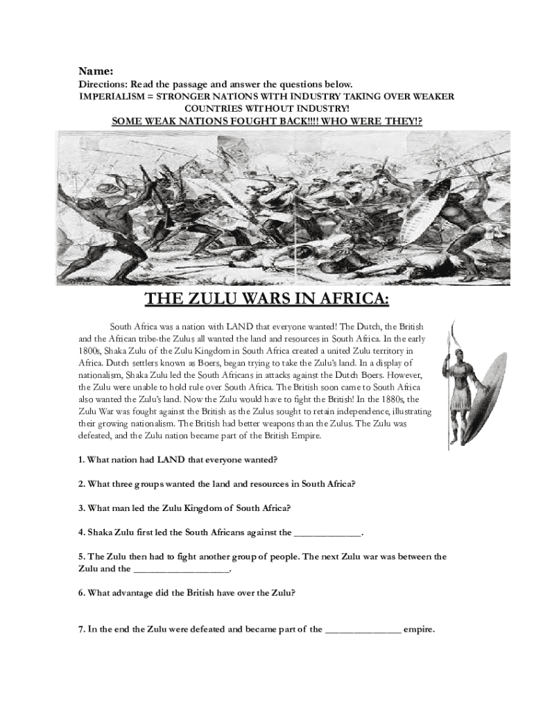 Name: Directions: Read the passage and answer the questions below. IMPERIALISM STRONGER NATIONS WITH INDUSTRY TAKING OVER WEAKER COUNTRIES WITHOUT INDUSTRY!SOME WEAK NATIONS FOUGHT BACK!!!! WHO WERE