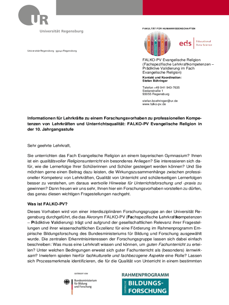 FAKULTT FR HUMANWISSENSCHAFTENUniversitt Regensburg 93040 RegensburgFALKOPV Evangelische Religion (Fachspezifische Lehrkraftkompetenzen Prdiktive Validierung im Fach Evangelische Religion) Kontakt