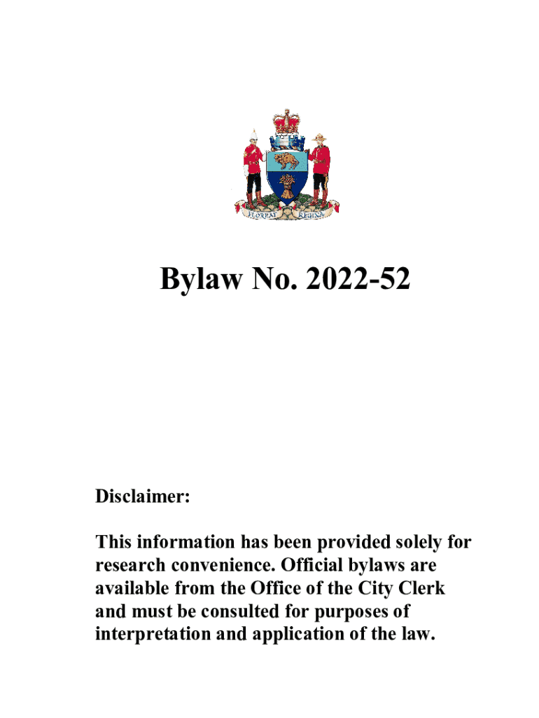 Bylaw No. 202252Disclaimer: This information has been provided solely for research convenience. Official bylaws are available from the Office of the City Clerk and must be consulted for purposes of