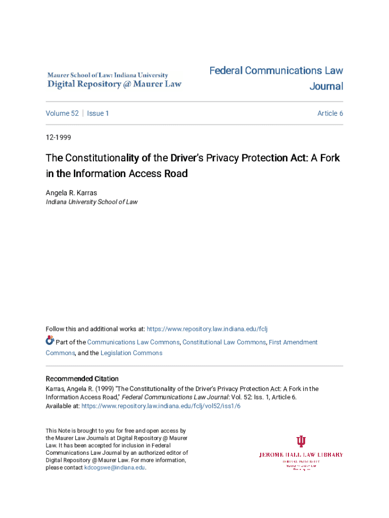 This article examines the constitutionality of the Driver\'s Privacy Protection Act (DPPA), focusing on its implications for information access, First Amendment rights, and the regulatory impact on state sovereignty. It discusses the historical context of the DPPA, its legislative background, and the circuit splits regarding its constitutional validity, particularly under the Tenth, Eleventh, Fourteenth, and First Amendments.
