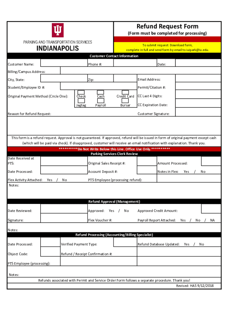 Get the free Refund Request Form