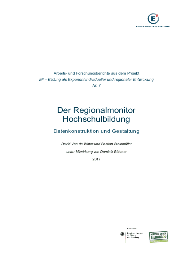 Arbeits und Forschungsberichte aus dem Projekt EB Bildung als Exponent individueller und regionaler Entwicklung Nr. 7Der Regionalmonitor Hochschulbildung Datenkonstruktion und Gestaltung David Van