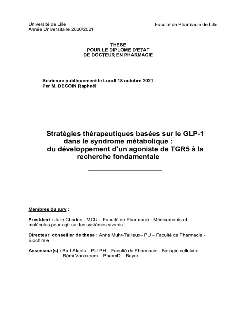 Universit de Lille Anne Universitaire 2020/2021Facult de Pharmacie de LilleTHESE POUR LE DIPLOME D\'ETAT DE DOCTEUR EN PHARMACIESoutenue publiquement le Lundi 18 octobre 2021 Par M. DECOIN Raphal___Stratgies