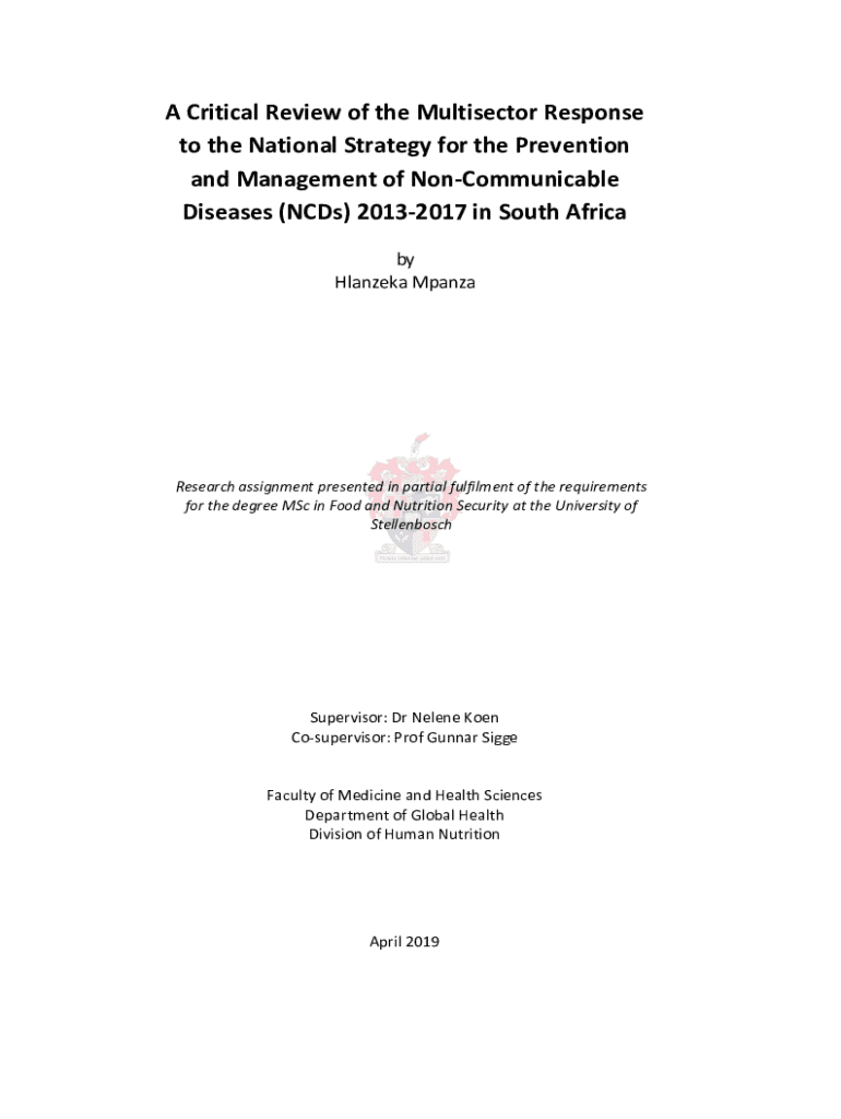A Critical Review of the Multisector Response to the National Strategy for the Prevention and Management of NonCommunicable Diseases (NCDs) 20132017 in South Africa by Hlanzeka MpanzaResearch assignment