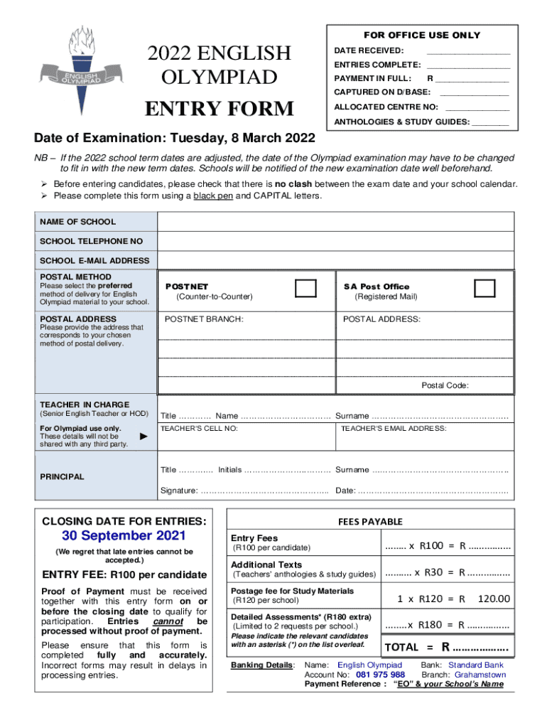2022 English Olympiad Entry is not the form you're looking for?Search for another form here.