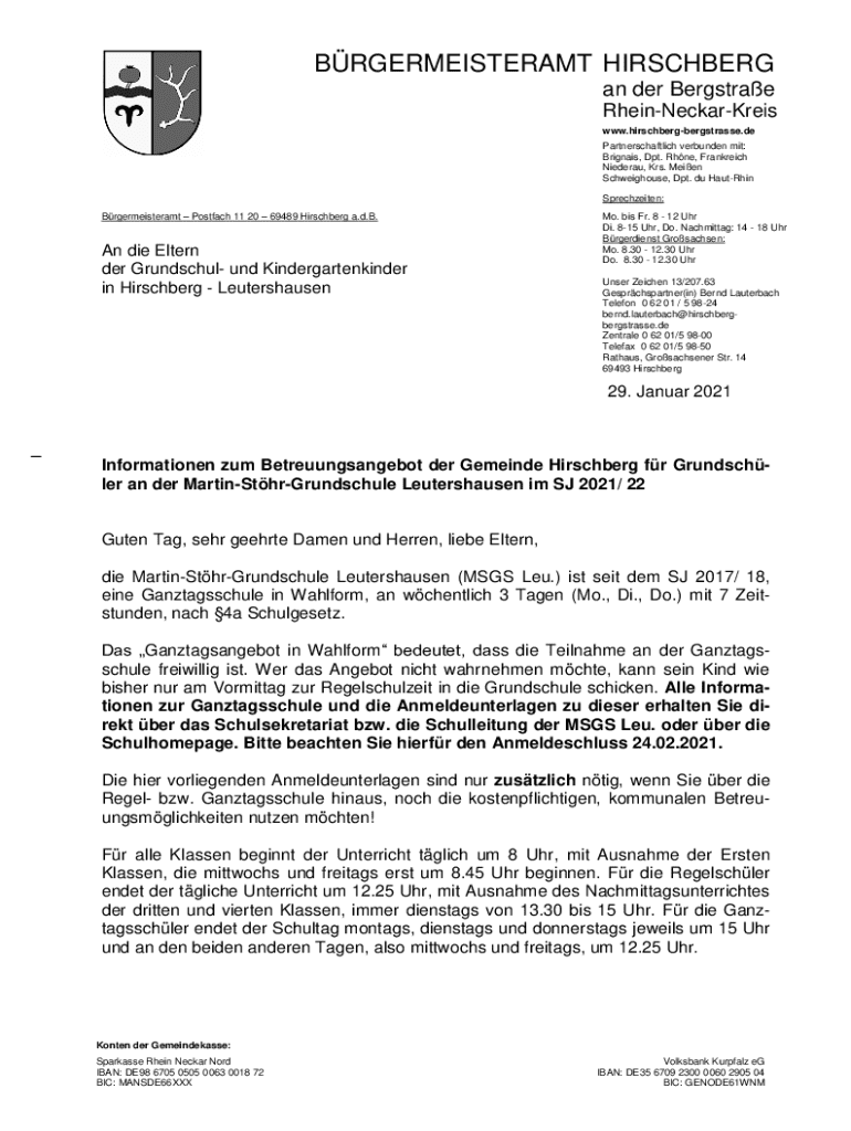 BRGERMEISTERAMT HIRSCHBERG an der Bergstrae RheinNeckarKreis www.hirschbergbergstrasse.de Partnerschaftlich verbunden mit: Brignais, Dpt. Rhne, Frankreich Niederau, Krs. Meien Schweighouse, Dpt. du