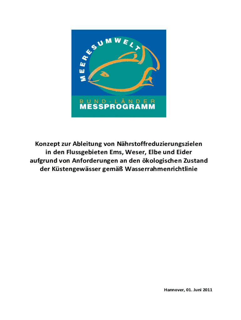 Konzept zur Ableitung von Nhrstoffreduzierungszielen in den Flussgebieten Ems, Weser, Elbe und Eider aufgrund von Anforderungen an den kologischen Zustand der Kstengewsser gem WasserrahmenrichtlinieHannover,