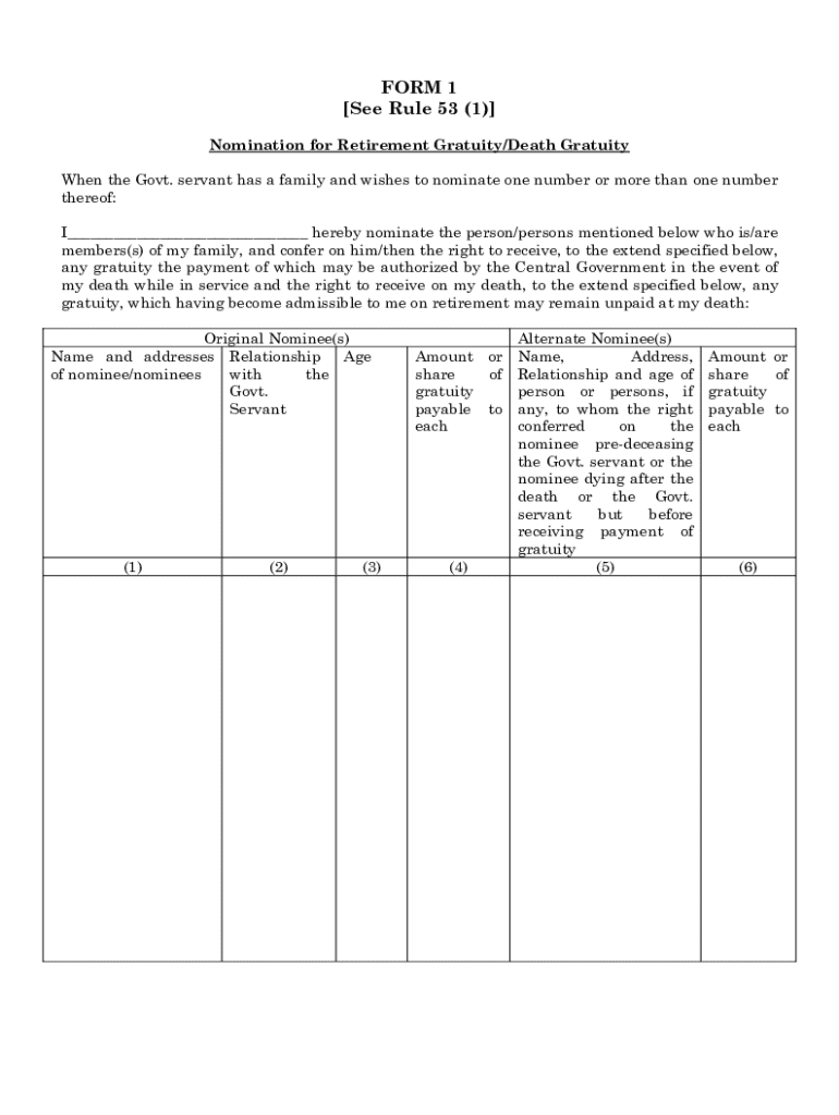 Nomination For Retirement Gratuitydeath is not the form you're looking for?Search for another form here.
