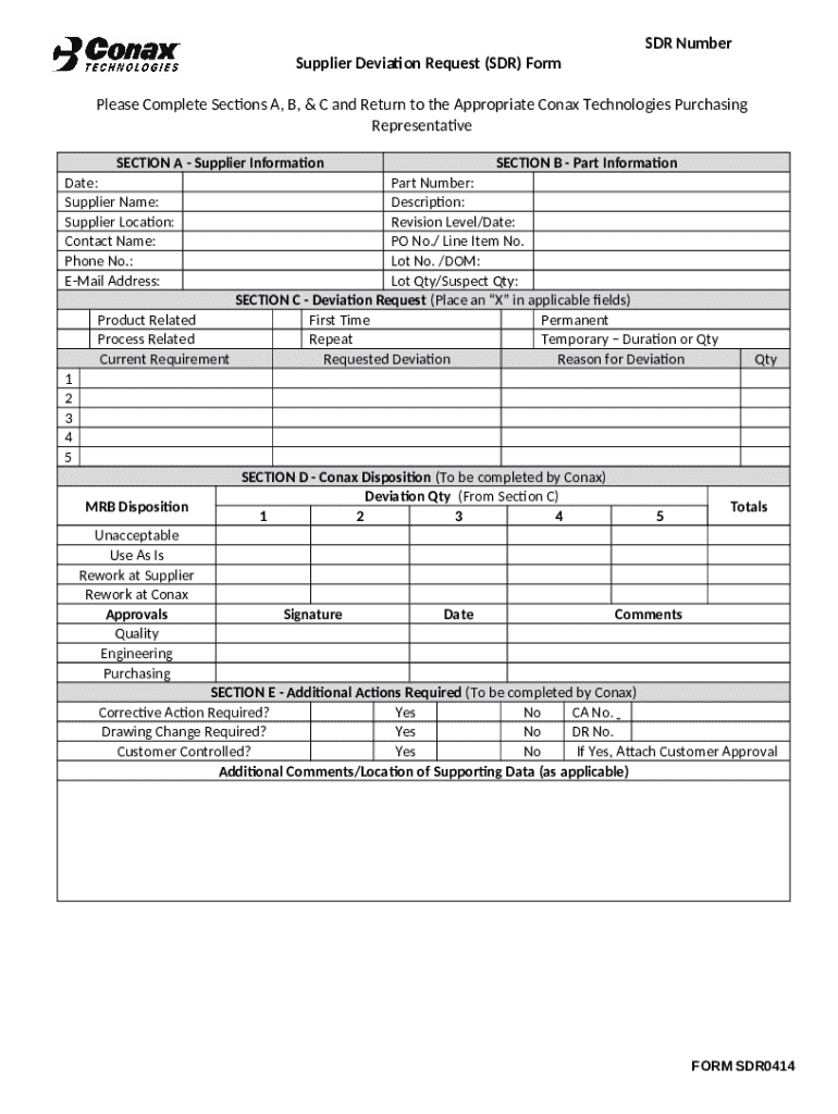 Supplier Deviation Request Sdr is not the form you're looking for?Search for another form here.