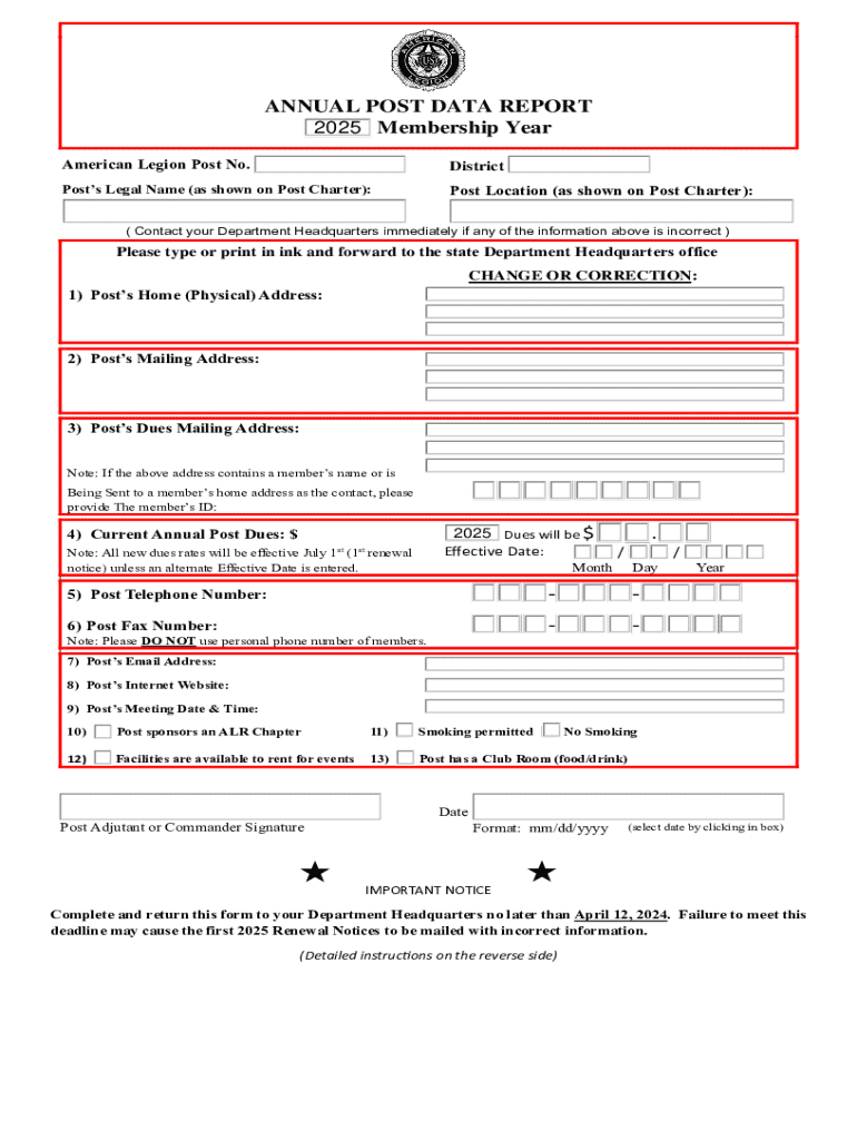 Get the free ANNUAL POST DATA REPORT 2025 Membership Year