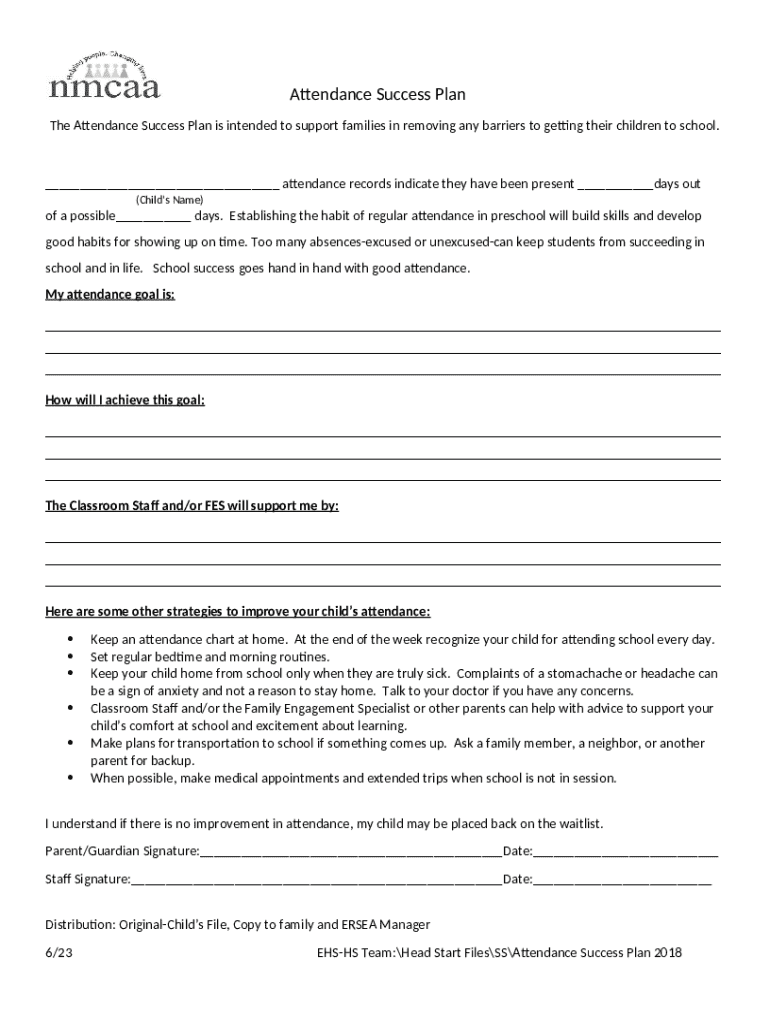 Student Attendance Success Plans with My Family's Help ... word template: frequently asked questions