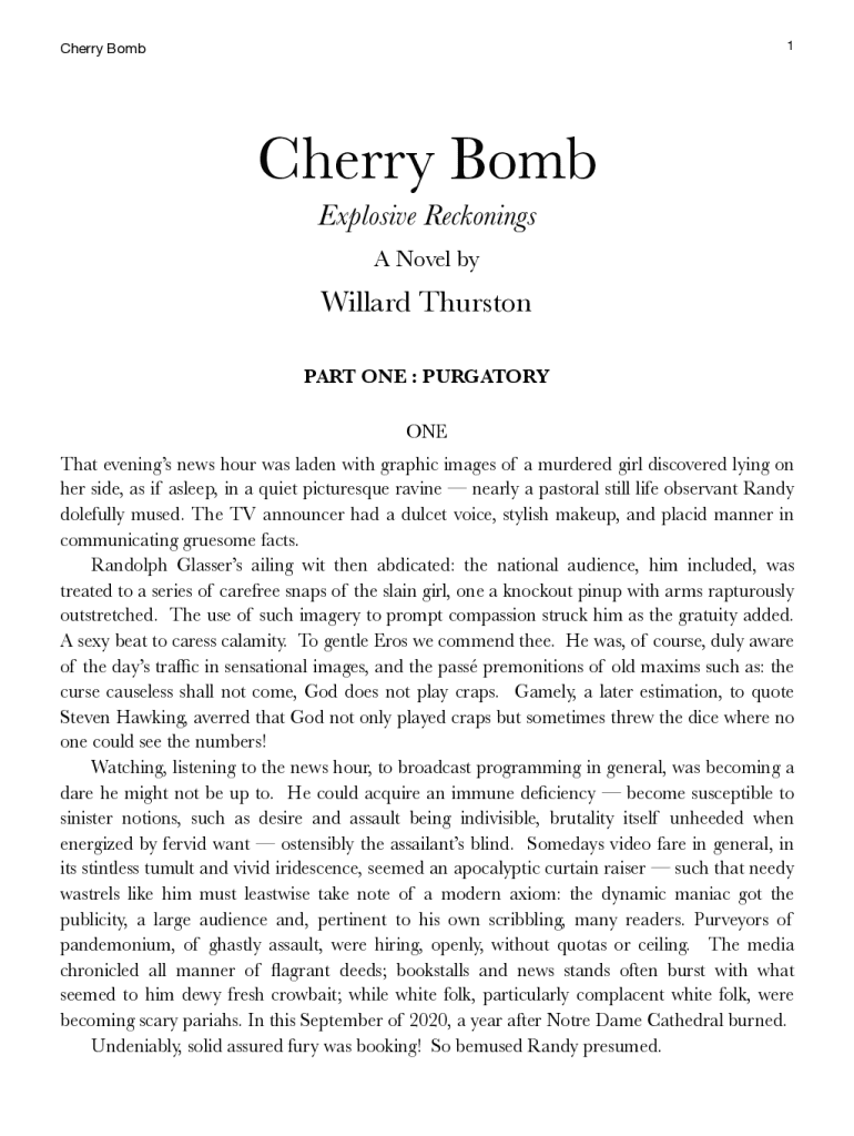 Cherry Bomb tells the story of Randolph Glasser, an aspiring writer dealing with the dark and complex themes of modern society, violence, and media sensationalism. Set against the backdrop of a fictional Vancouver, the narrative intertwines various characters, including Vijay Kurtz, a mercenary, and Maureen Rutquist, an actress. The plot weaves through disturbing events, including theatrical performances, a murderer on the loose, and intertwining relationships that struggle with morality and...