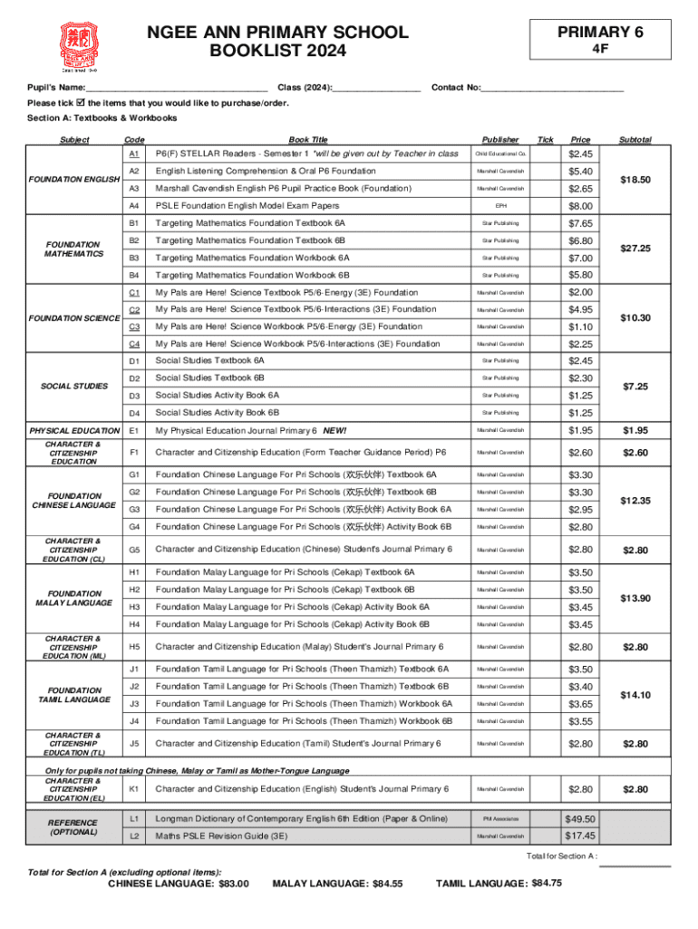 Get the free Ngee Ann Primary School Booklist 2024
