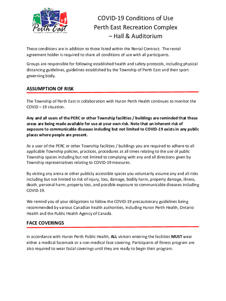 Get the free COVID-19 Conditions of Use Perth East Recreation Complex