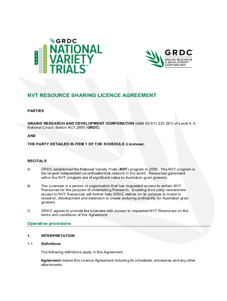 Get the free NVT Resource Sharing Agreement - National Variety Trials - GRDC