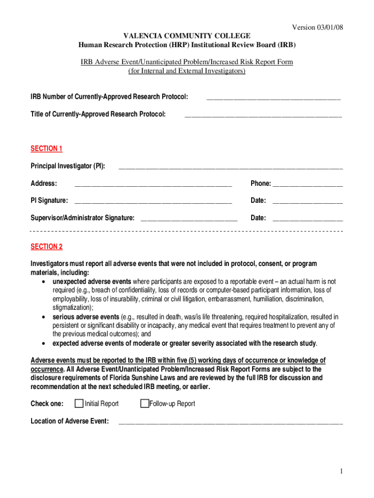 Fill out your irb adverse eventunanticipated problemincreased online with pdfFiller!